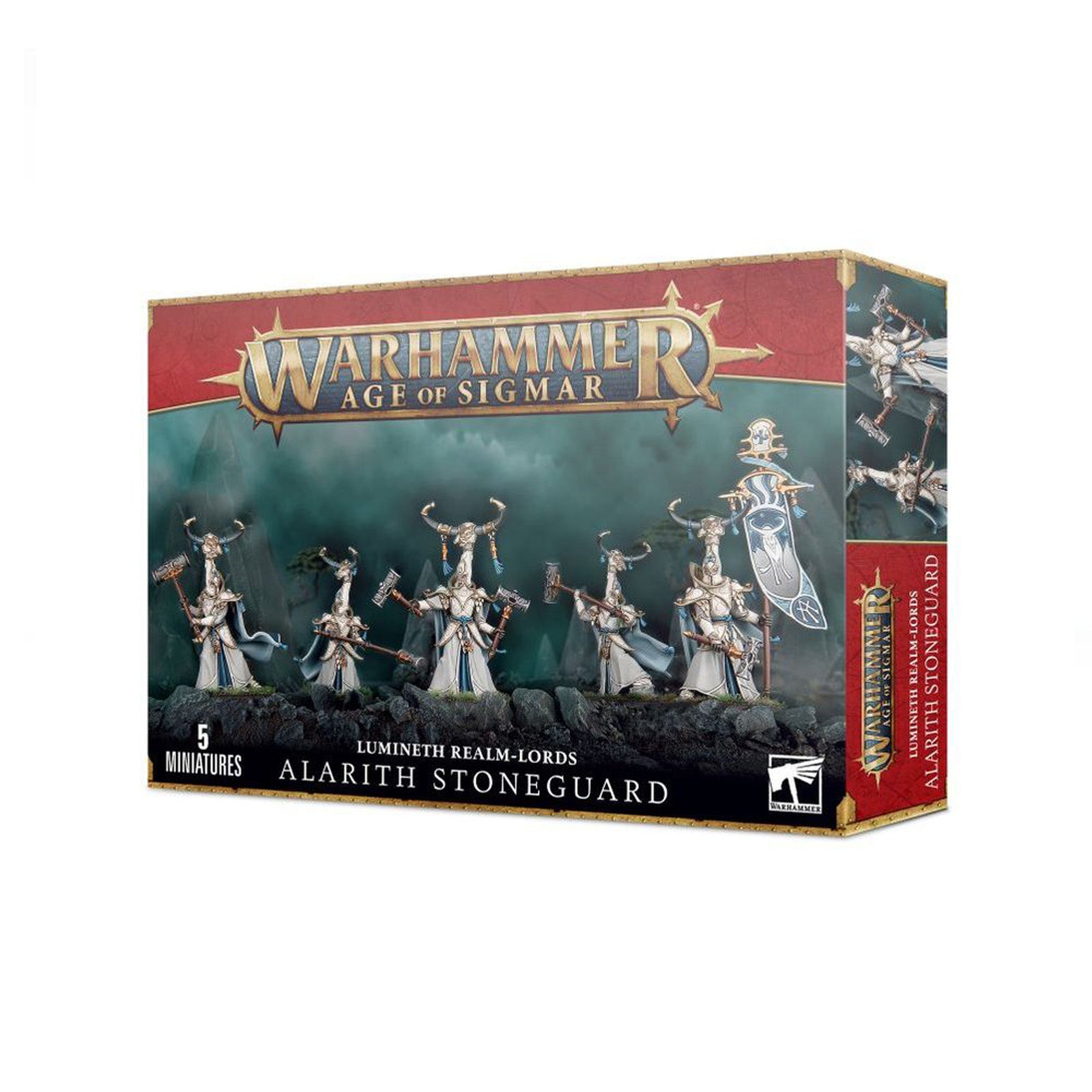 This kit builds 5 Alarith Stoneguard, with options for a Standard Bearer and Truestone Seneschal. Each Alarith Stoneguard can be armed with your choice of stone mallet or diamondpick hammer, while the Truestone Seneschal can wield a pair of stratum hammers. This kit is supplied in 63 plastic components and comes with 5x32mm round bases.