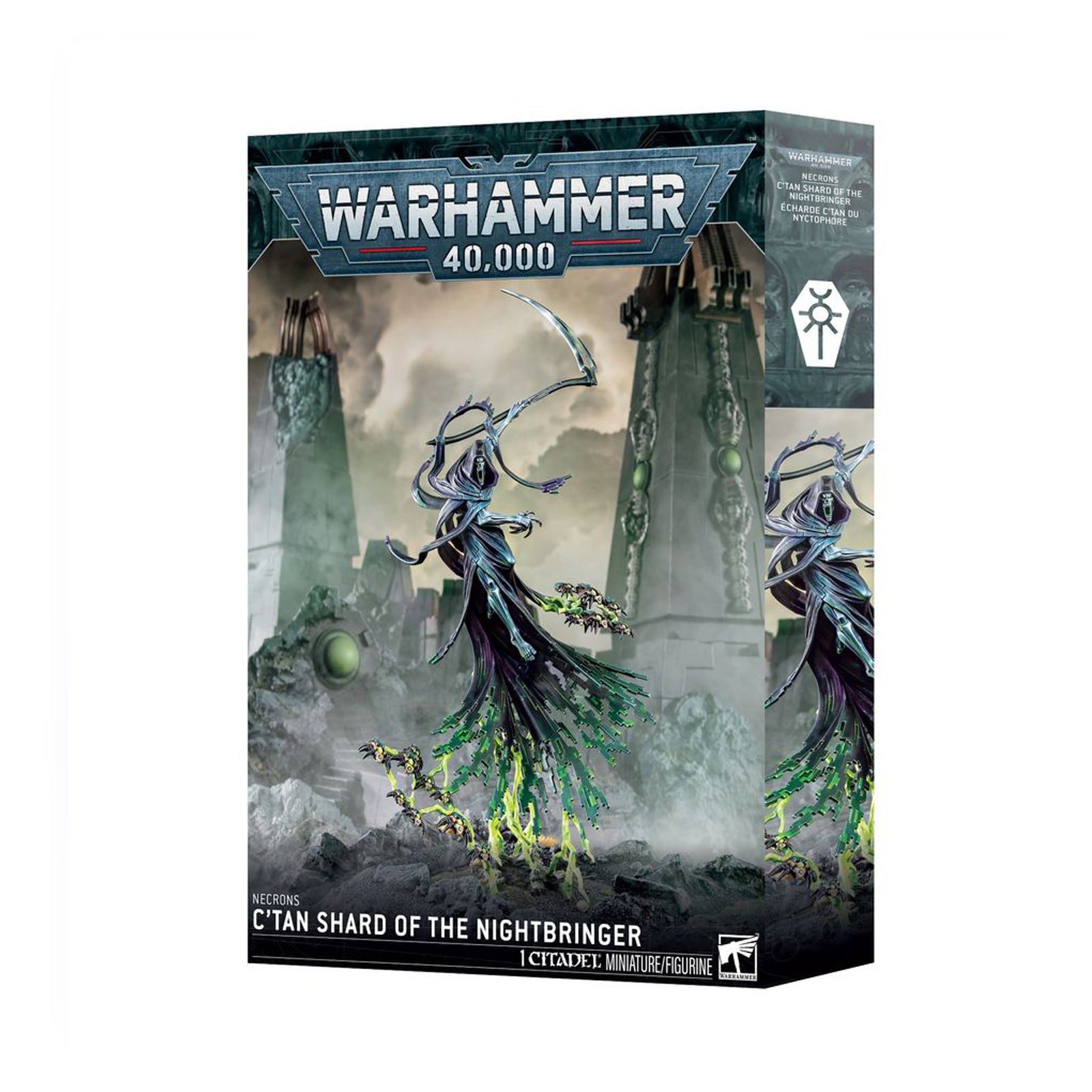 The Nightbringer was once death incarnate – a sadistic god with the power to unmake the stars and a hunger for the life of the galaxy. Like its fellow C’tan, it was shattered by the Necrons, and its insane fragments have ever since been enslaved by those it once ruled. A single shard of the Nightbringer can destroy entire armies. They extrude scythe‑shaped blades from their necrodermis, using them to cull their enemies with great sweeps of entropic unmaking. Their very gaze, meanwhile, is death itself, capable of leeching the essential animus from their victims.