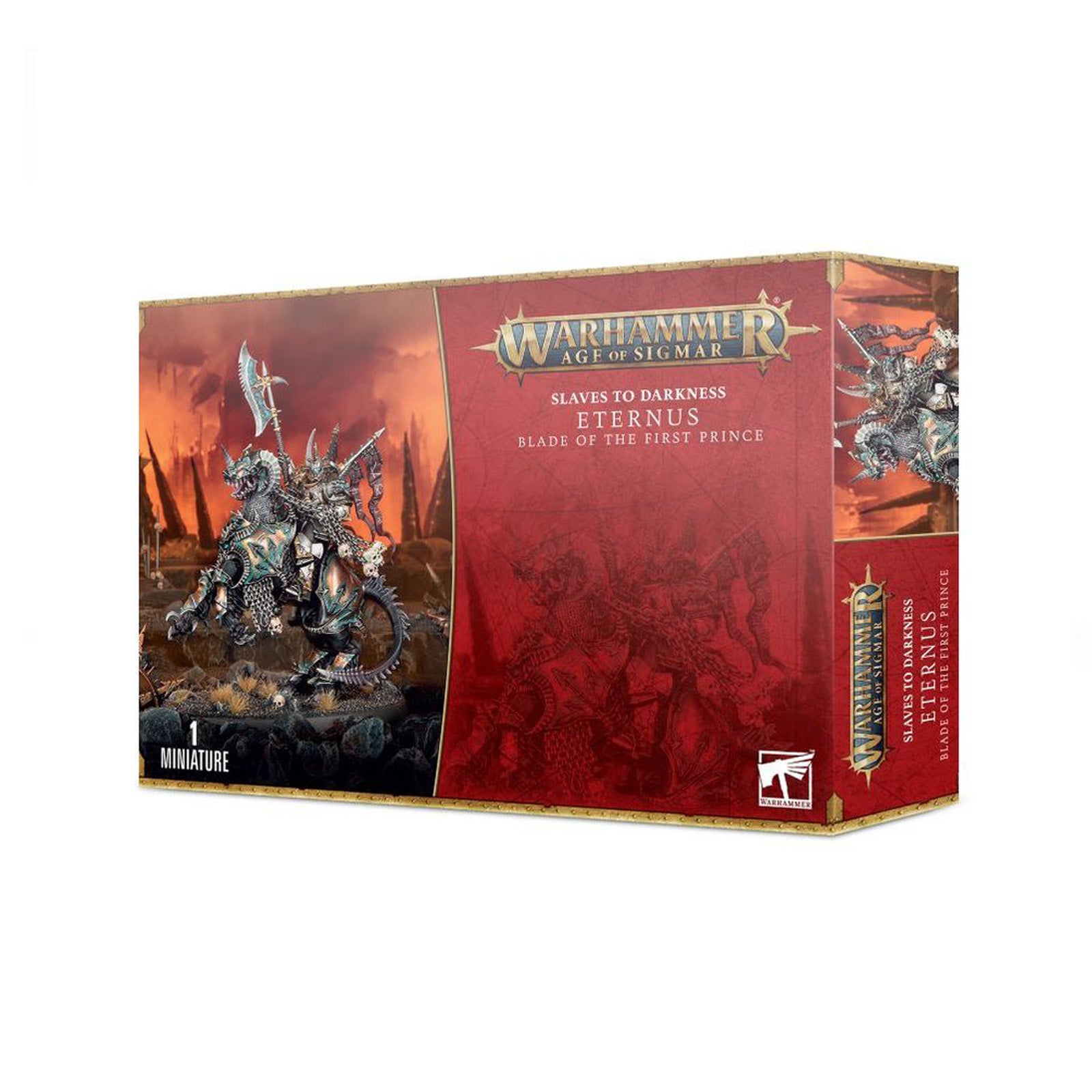 The Blade of the First Prince was one of Archaon’s loyal Varanguard – a champion of the Eighth Circle known as Atarus – until he renounced the Everchosen and swore fealty to the Dark Master. Destroyed and reborn by Be'lakor's sorcery, he became Eternus – the chosen agent of the First Prince. The lord of traitors now rides at the head of Be'lakor's legions, crushing rivals in battle and commanding a vast network of spies and agents. Even death cannot halt his machinations, for each time Eternus is slain, he is reborn in a flash of black lightning – a cruel parody of Sigmar's Stormcast Eternals.