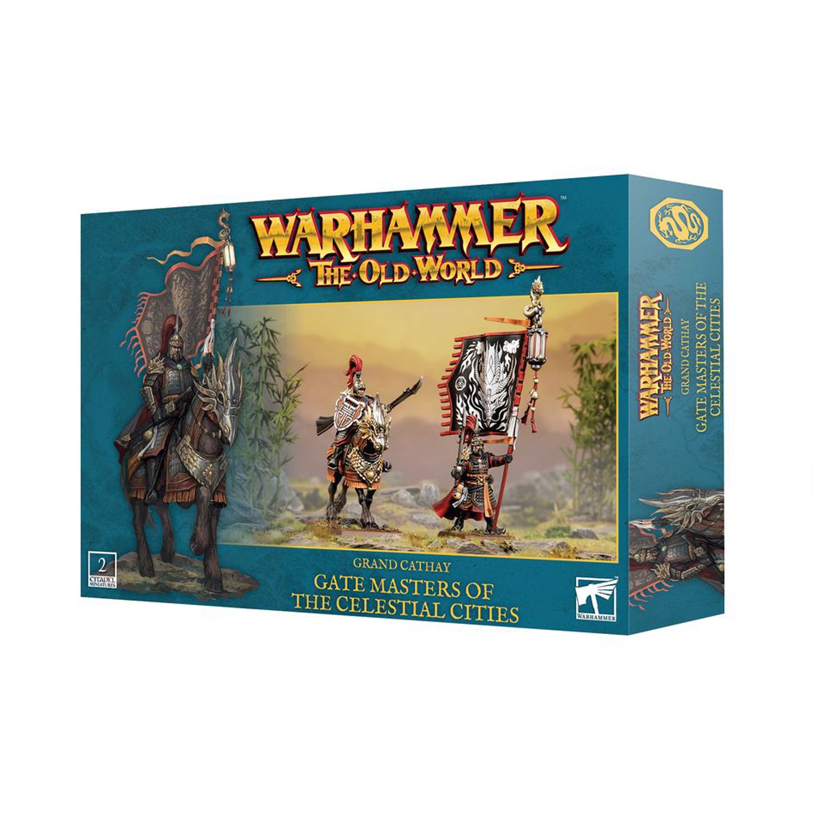 This multipart plastic kit builds two Gate Masters of the Celestial Cities – one on foot and one atop a Cathayan Warhorse – distinguished leaders that can represent a Gate Master or a Gate Keeper for your Armies of Grand Cathay in games of Warhammer: The Old World. They are ideal for commanding from the front, inspiring your forces to victory in the World of Legend.
