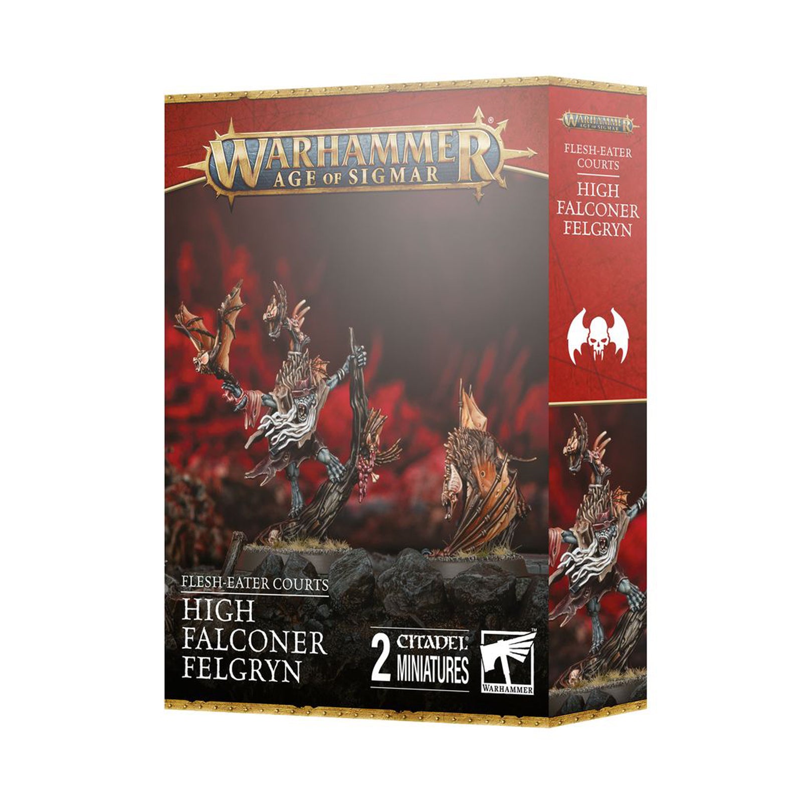 This multipart plastic kit builds High Falconer Felgryn – a fiendish leader – and his 'hunting falcon' Grype, for your Flesh-eater Courts armies in games of Warhammer Age of Sigmar. This twisted warrior uses his beasts to great effect, supporting your army and inspiring nearby serfs to fight all the harder. These dynamic miniatures are a great way to add even more character to your collection and help you to victory on the tabletop.