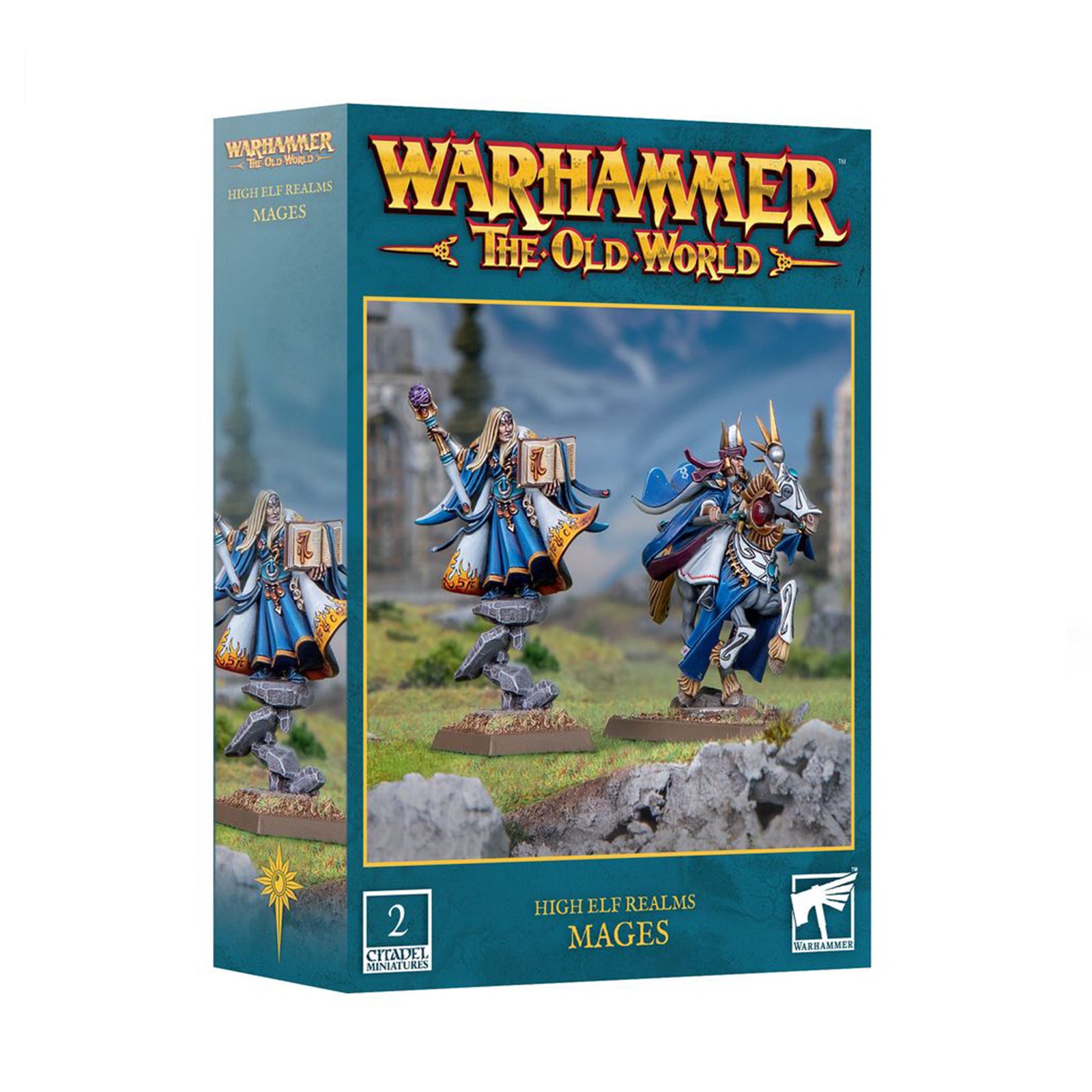 This multipart plastic kit builds two High Elf Mages – one on foot and one atop a barded Elven steed – powerful Wizards for High Elf Realms armies in games of Warhammer: The Old World. These masters of the arcane arts are able to unleash the powers of the Winds of Magic upon your foes.