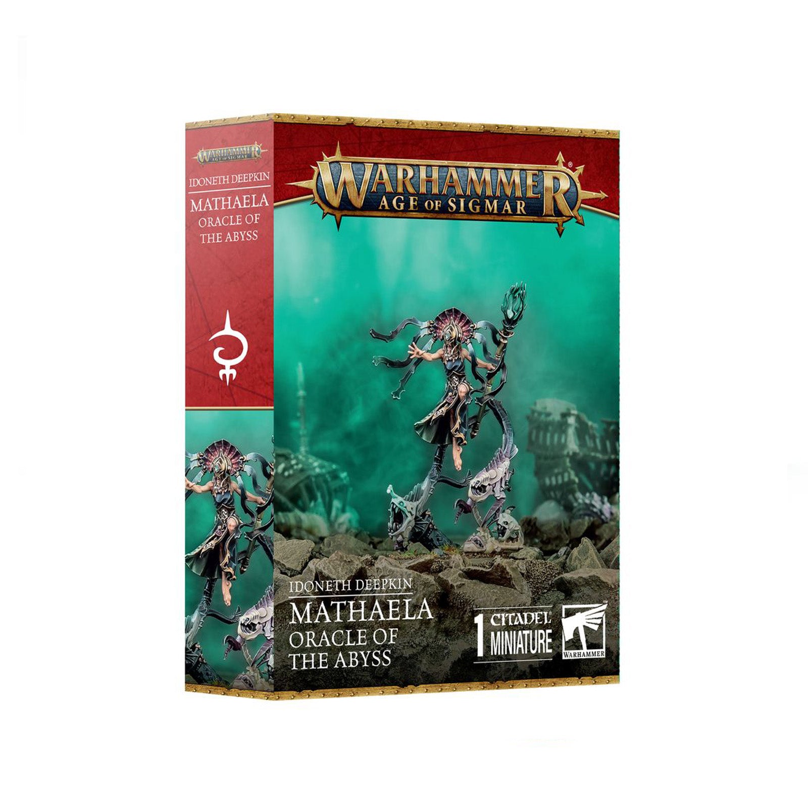 Mathaela, Oracle of the Abyss, is mysterious and terrifying, rising from their lightless domain only when the existence of the Deepkin is threatened. Wielding the crushing magic of the deepest ocean planes, they annihilate the Idoneth’s foes and stir the realmseas into violent motion.
