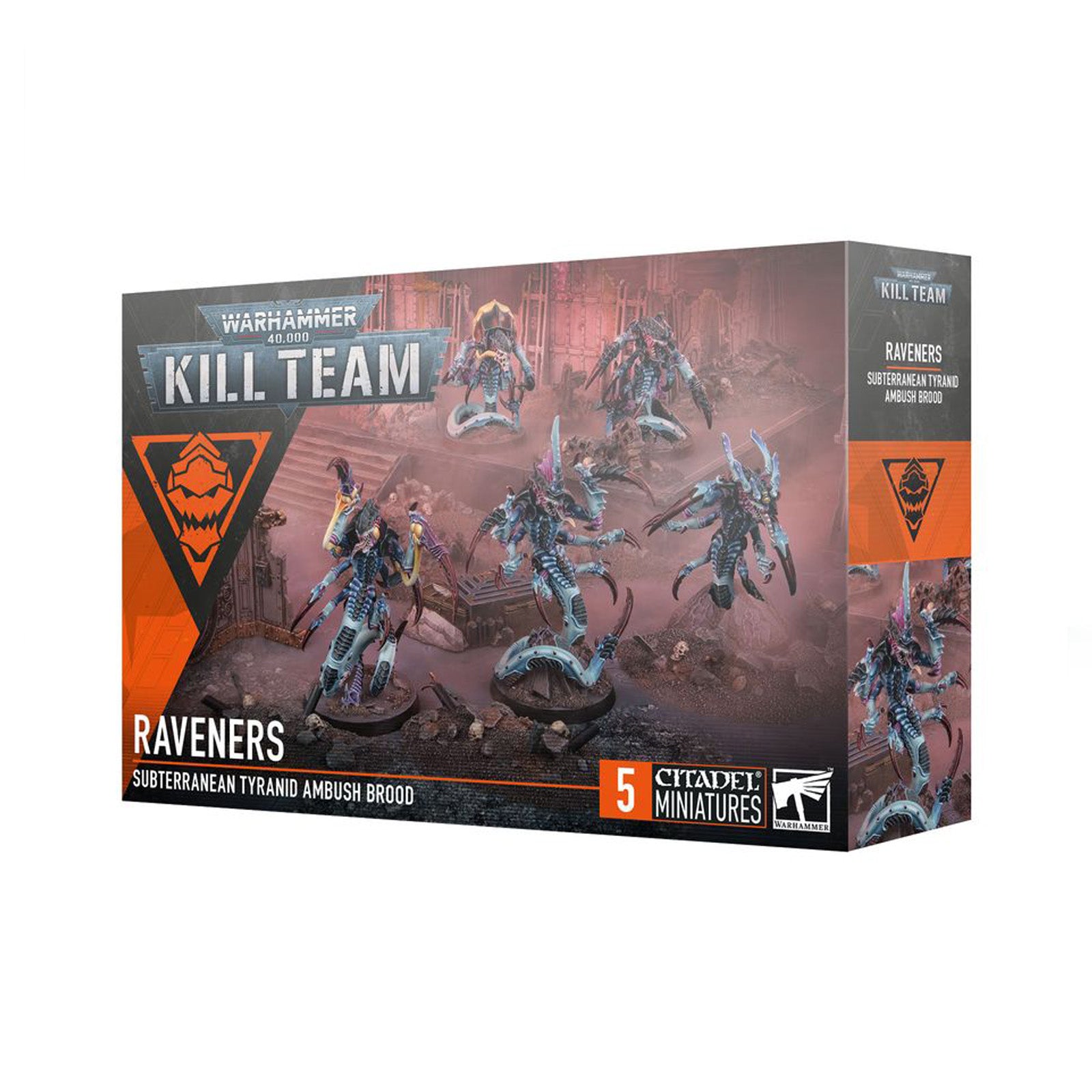 This multipart plastic kit builds 5 Raveners. These miniatures can be used as elite and aggressive killers in games of Kill Team, or fielded in a Tyranids army in games of Warhammer 40,000. The kit includes components to build five Ravener Warriors, or specialists like the brutal Wrecker, hypersensory Tremorscythe, ferocious Venomspitter, and more.